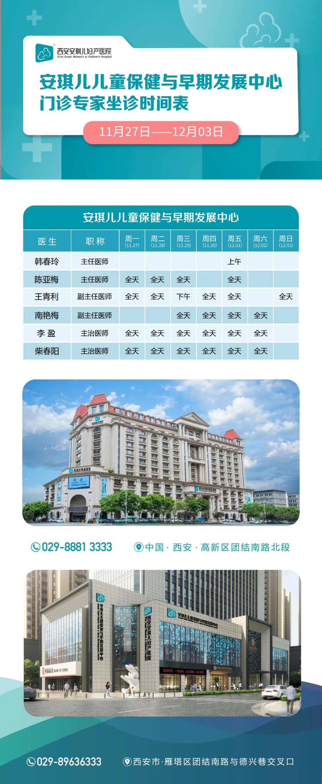 门诊专家(11月27日-12月03日)排班表