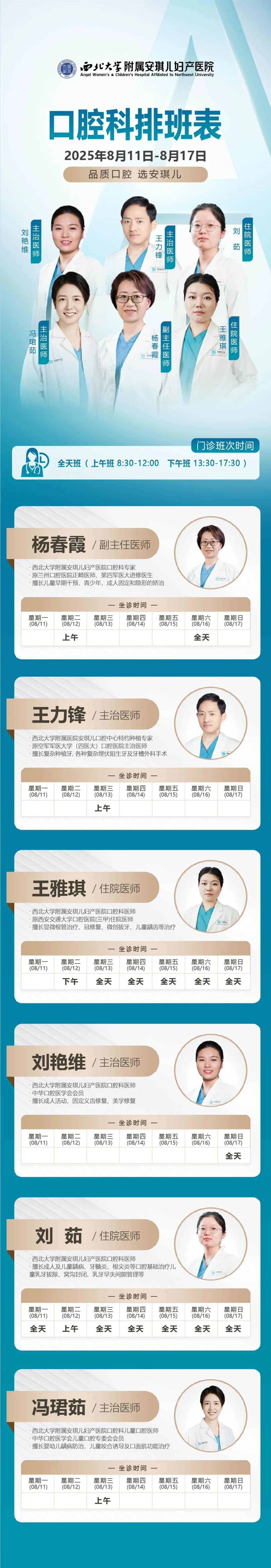 西安安琪儿妇产医院(8月11日至8月17日)专家坐诊时间表