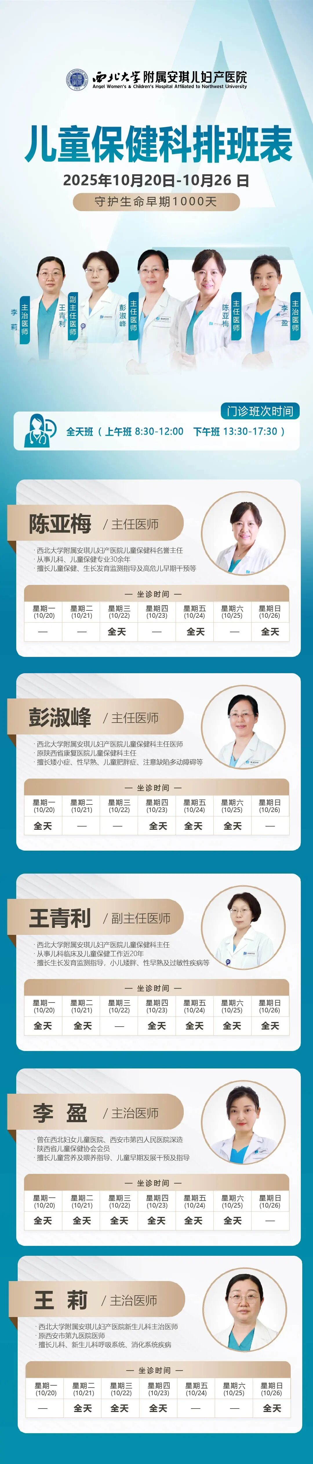 西安安琪儿妇产医院(10月20日至10月26日)专家坐诊时间表