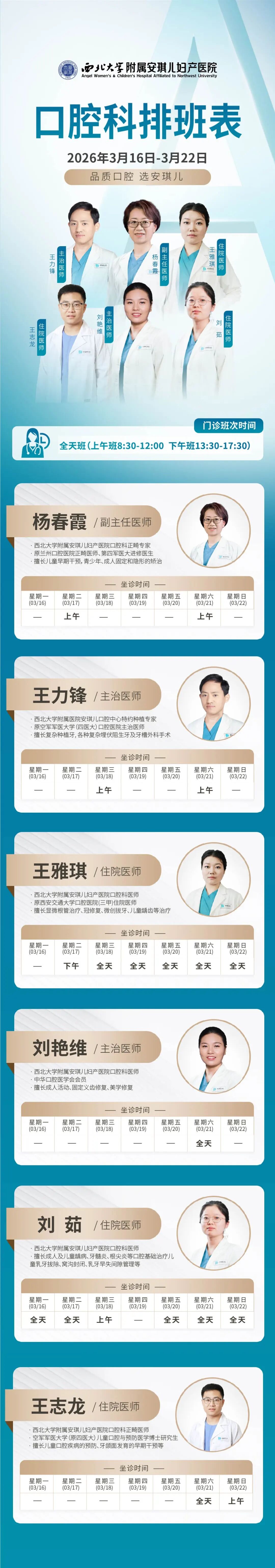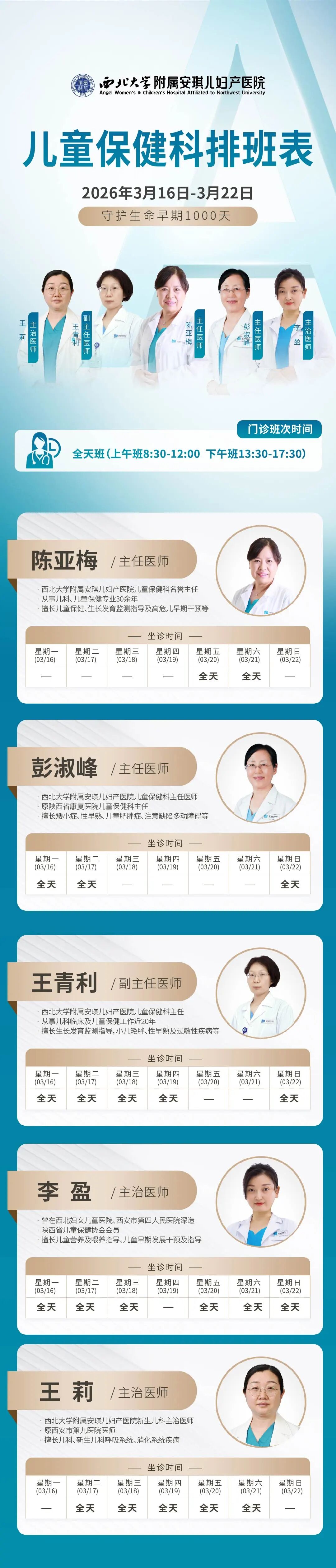 西安安琪儿妇产医院(3月16日至3月22日)专家坐诊时间表