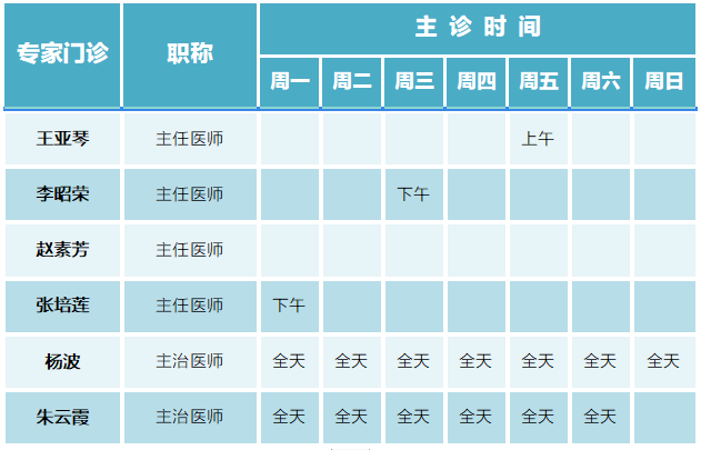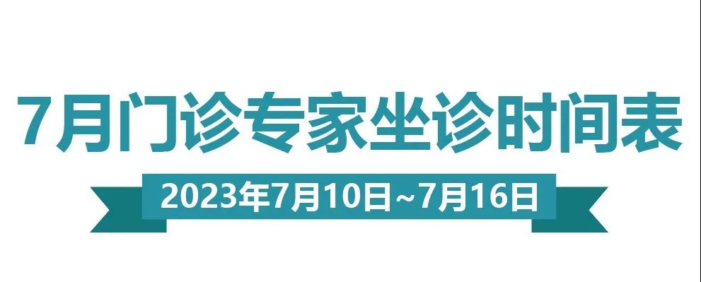 门诊排班|(7月10日-7月16日)门诊专家坐诊时间表