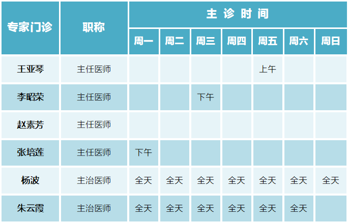 门诊排班|(7月17日-7月23日)门诊专家坐诊时间表