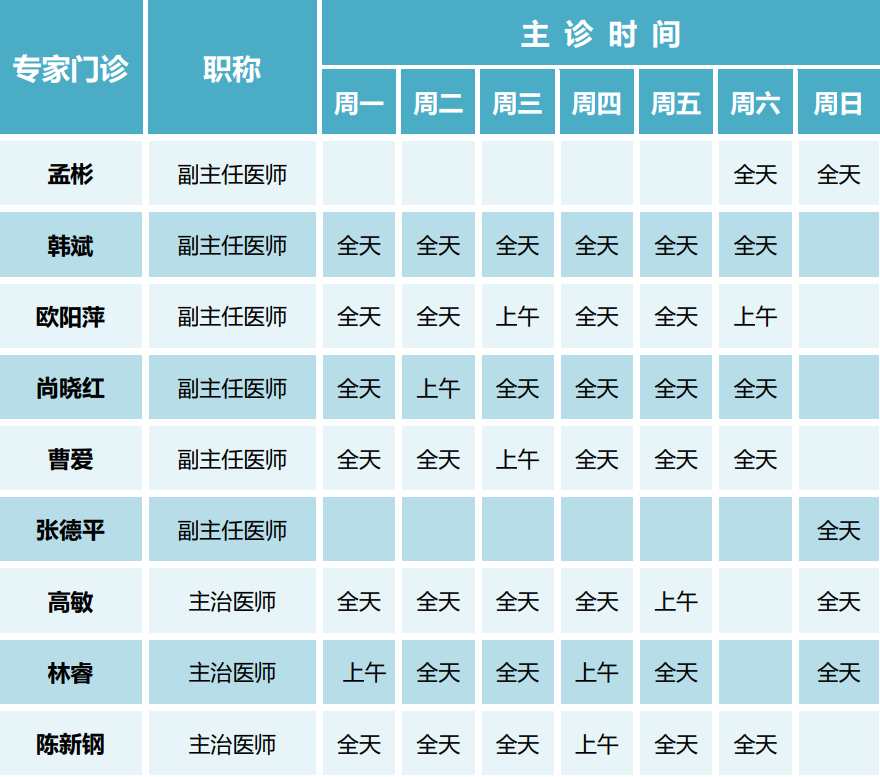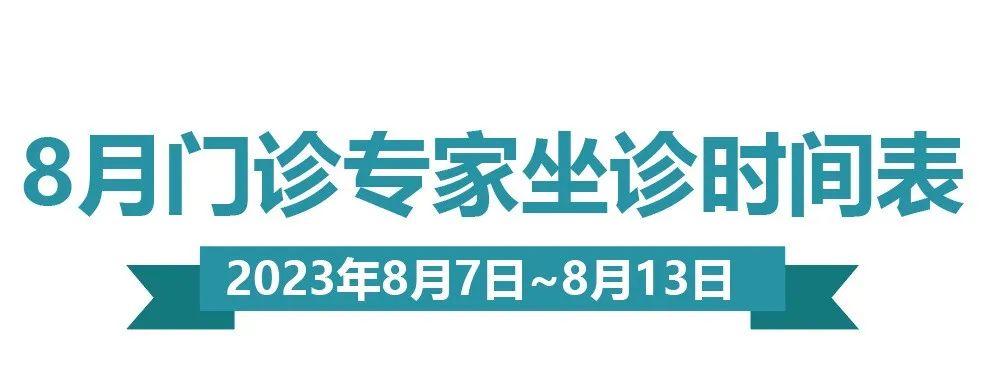 门诊排班|(8月7日-8月13日)门诊专家坐诊时间表