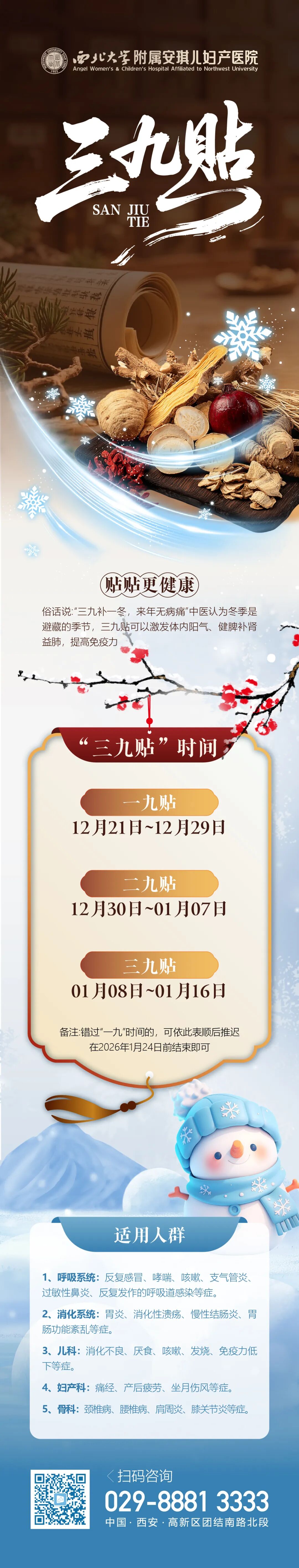 安琪儿中医科特推出“三九贴敷疗法”该疗法通过药物对穴位的刺激达到促进气血运行、抵御外邪入侵作用也为来年身体健康筑牢健康屏障